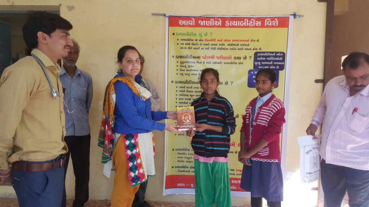 महात्मा सत्यानन्द मुंजाल एलोपैथी/ आयुर्वेदिक चिकित्सालय, वानप्रस्थ साधक आश्रम की ओर से आज अम्बासर प्राथमिक शाला में निःशुल्क आरोग्य निरीक्षण शिविर (हेल्थ चेकअप कैंप) का आयोजन प्रात: ९:३० से १२:०० बजे तक किया गया. कैम्प का आरंभ आचार्य संदीप जी के आशीर्वचन के साथ हुआ, जिसमें उन्होंने स्वास्थ्य के साथ-साथ जीवन में आध्यात्मिकता धारण करने के लिए प्रेरणा दी और आश्रम में चल रहे १२ घंटे अग्निहोत्र को (जिसमें चिकित्सालय में आने वाले रोगी भी अपनी आहुतियाँ देते हैं) पर्यावरण शुद्धि तथा रोग निवारण के लिए अत्यंत उपयोगी माध्यम बताया. लगभग ५० व्यक्तियों का आरोग्य निरीक्षण किया गया, जिसमें डायबिटीज, बी.पी., सामान्य स्वास्थ्य का परीक्षण किया गया. डॉ. राहुल भाई, डॉ. हेताक्षी बहन तथा उनके सहयोगी निकुंज जी, अंकित जी तथा देवांगी जी के द्वारा यह शिविर पूर्ण हुआ. वहाँ के प्रिंसिपल और अन्य कार्यकर्ताओं को आश्रम की ओर से पुस्तकें भी भेंट की गयीं.